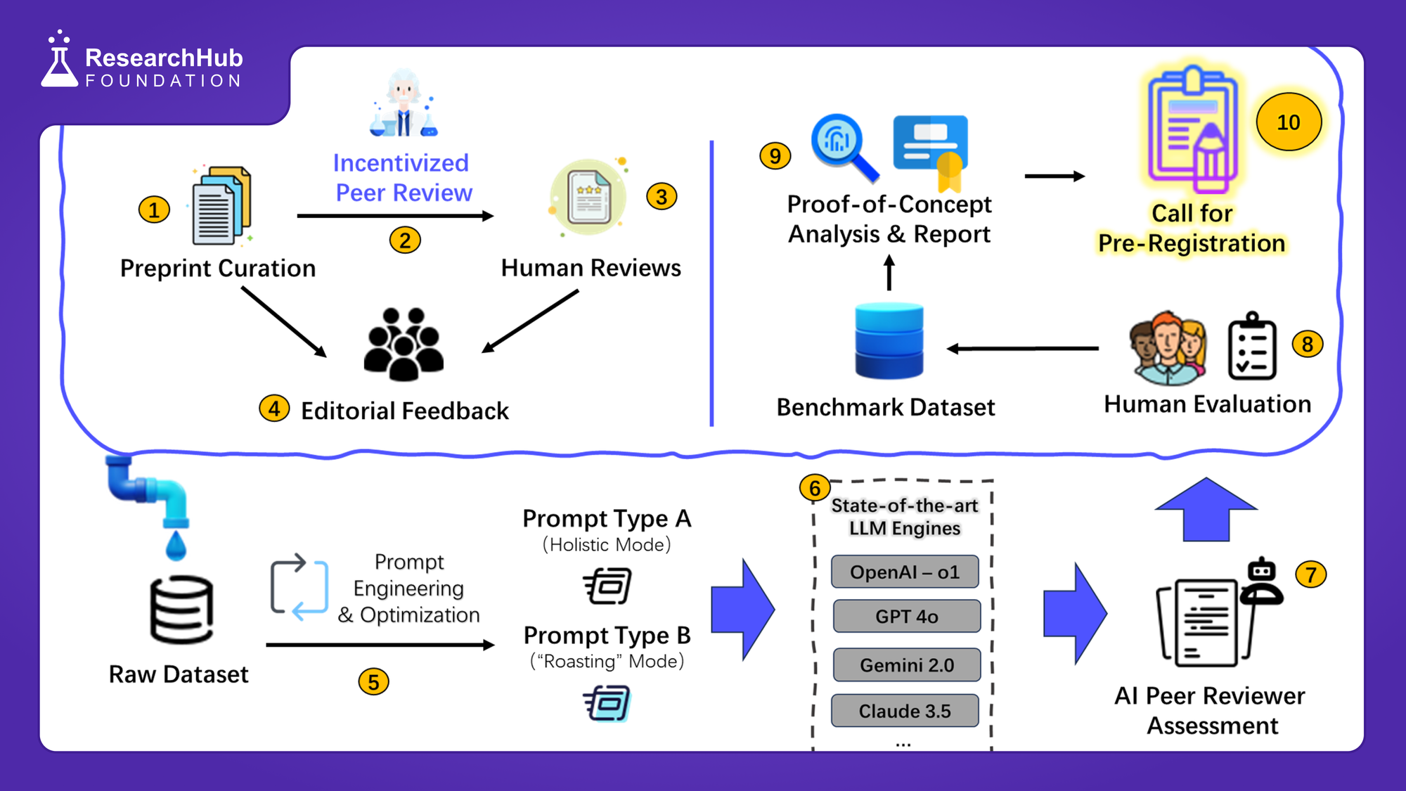 First milestone is up. Let's recap what we have achieved in the past 10 days: We have established a working Multi-Agents Infrastructure for AI Editors and Peer Reviewers driven by various SOTA LLM models. We have scanned through batches of scientific preprints and manuscripts, producing 200+ AI-generated editorial comments, reviewer personas, paper analyses, error identification, and ratings. All data is well recorded through our metadata tracing workflow. Keep an eye on the upcoming dataset release. We built a demo app to ensure easy use of paper submission and workflow customization. What's next? We will up our game to produce analytics and utility tools for the community. Stay tuned for more updates. Join our waitlist and be one of the first who can get hands-on with the app and help us do more human evaluations, pushing the boundaries of how Human and AI can accelerate science together.
